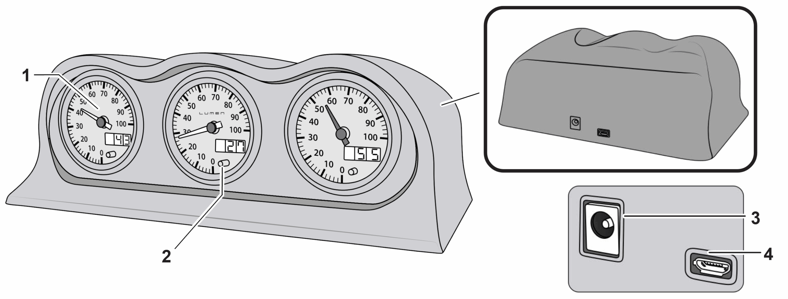 With the desktop software running on the computer, the gauges will light up and perform a sweep, and the desktop client will indicate that the device is connected. If this is your first time setting up, the gauges will read zero. Continue to the next chapter to begin displaying real-time system data.